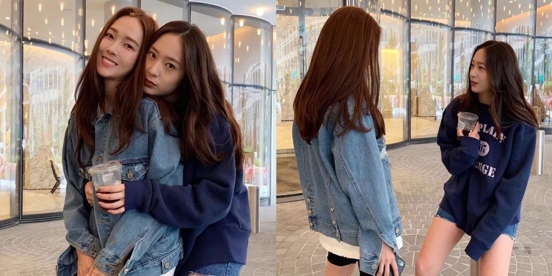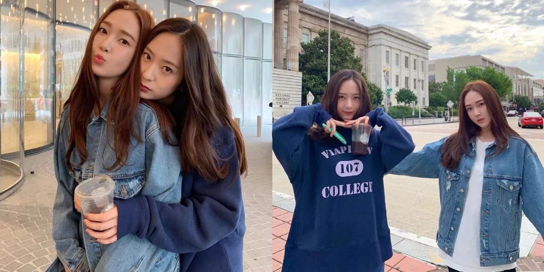 雾霾蓝既低调又高调,郑氏姐妹素颜出街穿它也没在怕的!