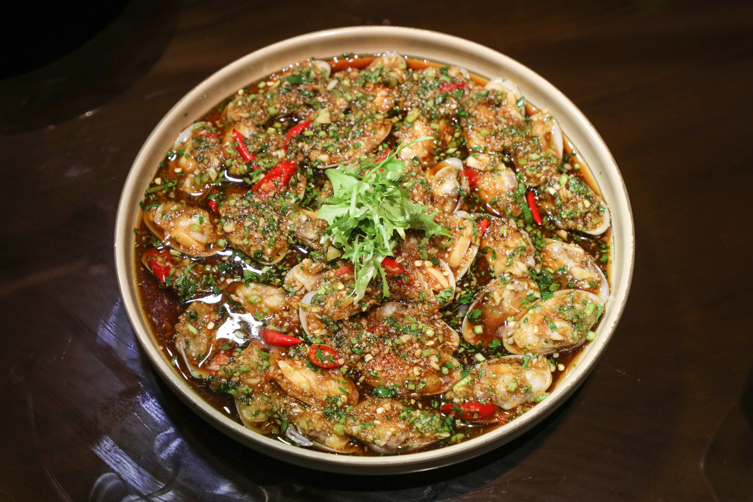 生腌血蚶3斤:酱油500毫升,纯净水20毫升,生蒜蓉70克,香菜碎80克,红辣椒末60克,芥末10克,辣椒油25克,料酒10克,白醋10克。在烫开水中泡20—30秒后捞起(不能烫到开口),用开蚶器翘开后摆盘,淋上腌汁即可,不用提前腌制。