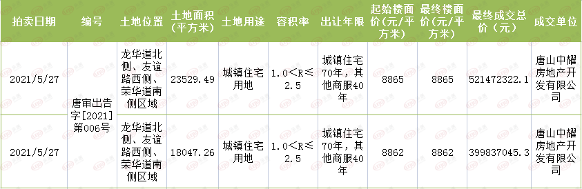 据监测,截至9月1日,2021年度内凤凰新城版块共计成交2宗城镇住宅用地,位于龙华道北侧、友谊路西侧、荣华道南侧区域,共计41576.75平方米,均由唐山中耀房地产开发有限公司底价成交。