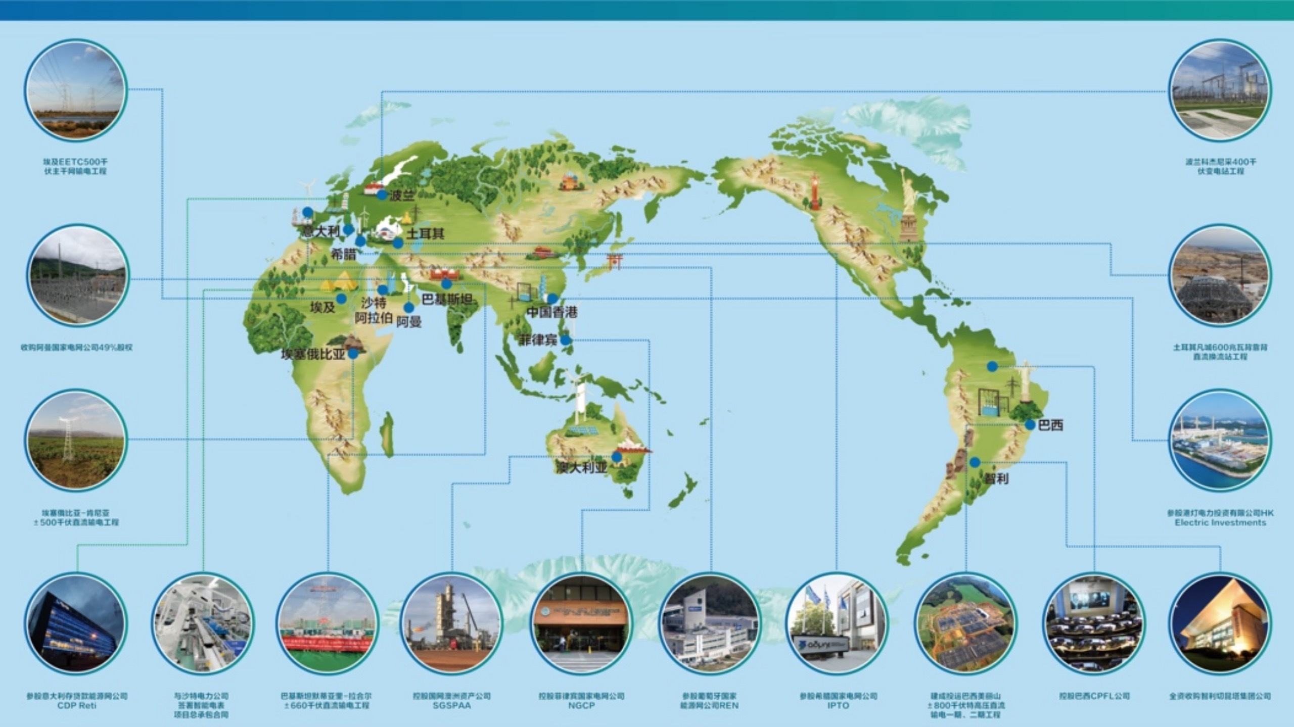 近年来,国家电网公司全面落实“走出去”战略,围绕“一带一路”建设,在51个国家开展国际业务,成功投资运营菲律宾、巴西、葡萄牙、澳大利亚、意大利、希腊、阿曼、智利和中国香港等9个国家和地区13个骨干能源网公司,境外工程合同额累计达到460亿美元,建成10条与周边国家电网互联跨国输电线路。