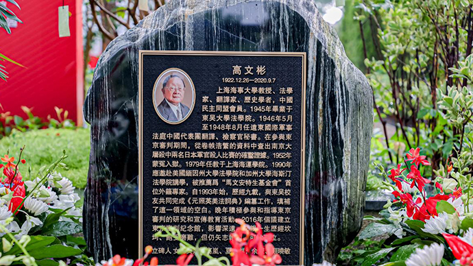 2021年9月3日,中国最后一位东京审判全程亲历者高文彬正式落葬上海福寿园,安眠在东京审判纪念碑一侧。本文图片均为 上海福寿园图9月3日是中国人民抗日战争胜利纪念日,也是世界反法西斯战争胜利纪念日。当天,中国最后一位东京审判全程亲历者高文彬正式落葬上海福寿园,安眠在东京审判纪念碑一侧。