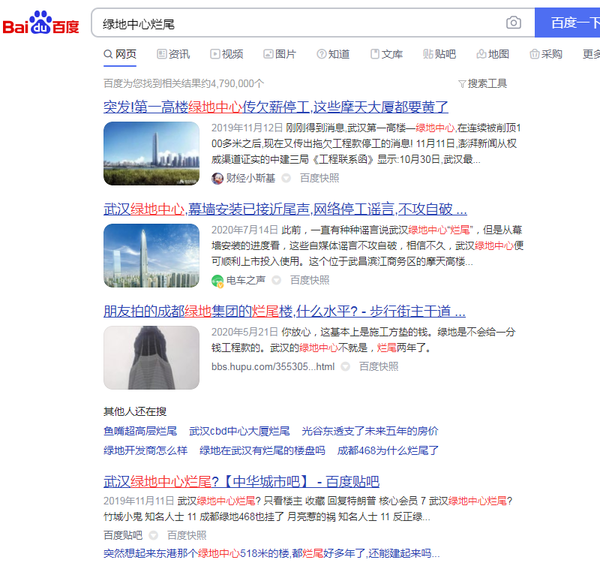 近年来武汉绿地中心、成都绿地中心、大连绿地中心、南充绿地中心等项目也都传言或出现过项目烂尾的情况,这给人一种绿地摩天大楼塔项目有“烂尾”传统的感觉。