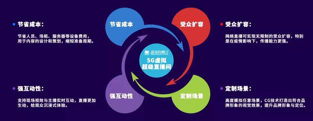 5G虚拟直播间的优势就在于我们能量身定制各种虚拟场景,这就可以应用到很多领域去,比如一个产品发布会,你可以有一个虚拟的舞台、一块虚拟的屏幕、甚至是虚拟的产品和虚拟的主播,你能想到的内容虚拟直播间都能帮你实现。
