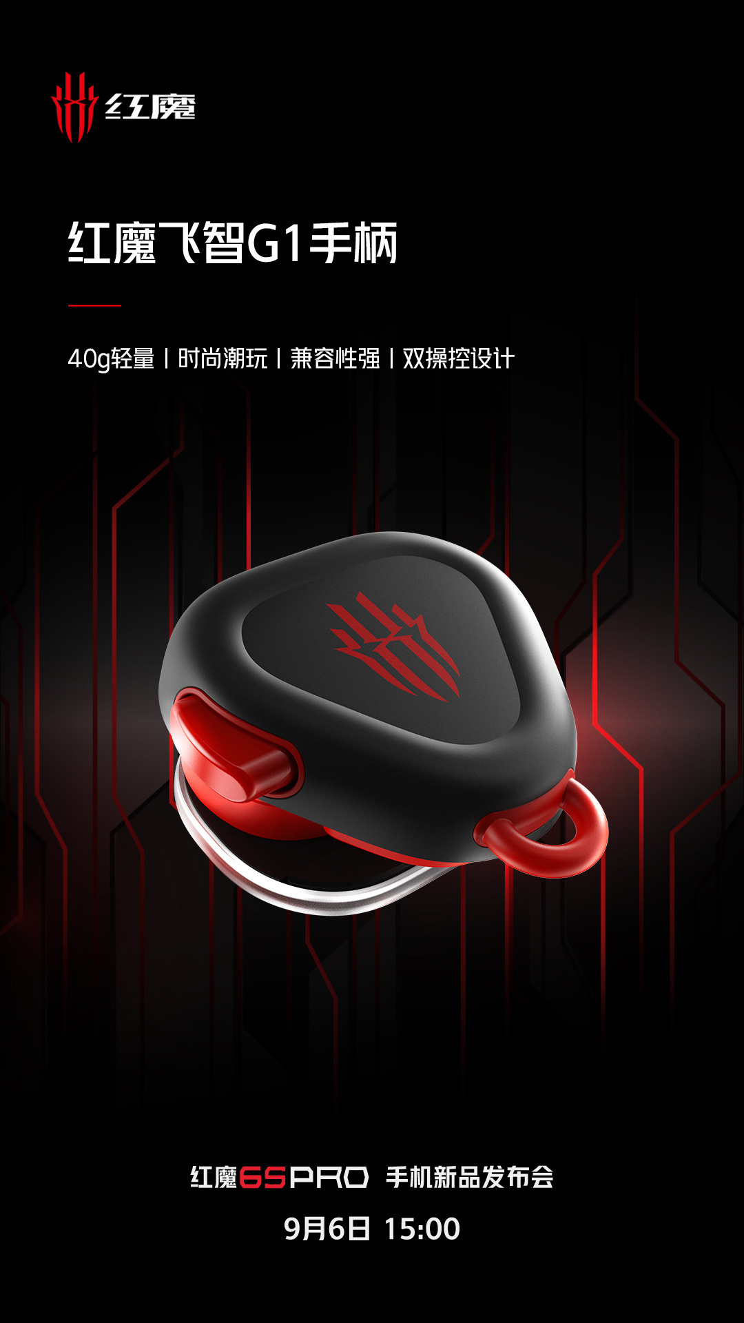 IT之家 9 月 3 日消息 红魔游戏手机再次对即将发布的新品进行预热。除了腾讯红魔游戏手机 6S Pro,9 月 6 日的发布会还将同时推出红魔飞智 G1 手柄、红魔 10000mAh 移动电源。