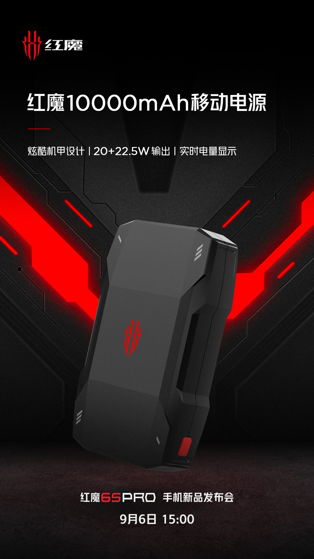 IT之家获悉,红魔 6S Pro 手机新品发布会将于 9 月 6 日 15:00 举办,移动电源、手柄将一同发布。
