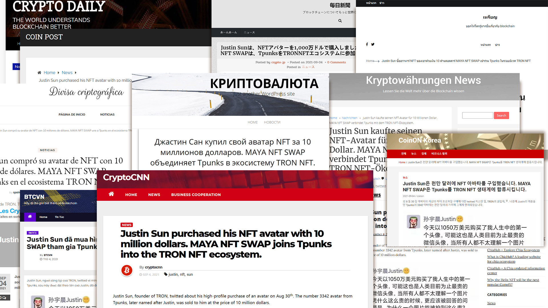8月30日,波场TRON创始人孙宇晨发布推文宣布,他以1050万美元的价格拍下编号为3442的Justin Sun Tpunks头像。