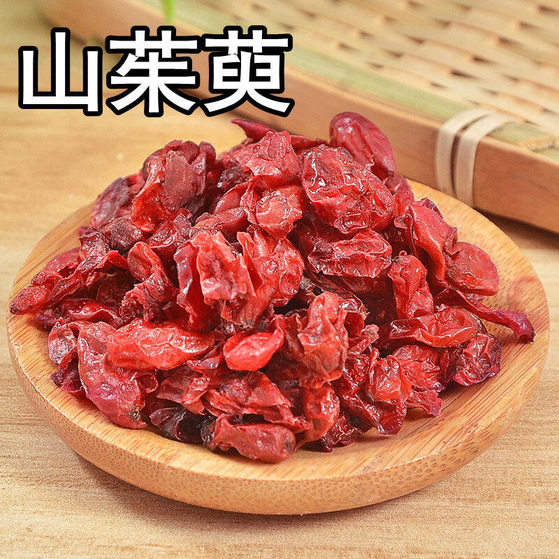 本品为山茱萸科植物山茱萸Cornus offcinalis Sieb. et Zucc.的干燥成熟果肉,又名枣皮,魅实,鼠矢,鸡足,山萸肉,实枣儿,肉枣,药枣等;秋末冬初果皮变红时采收果实,用文火烘或置沸水中略烫后,及时除去果核,干燥。