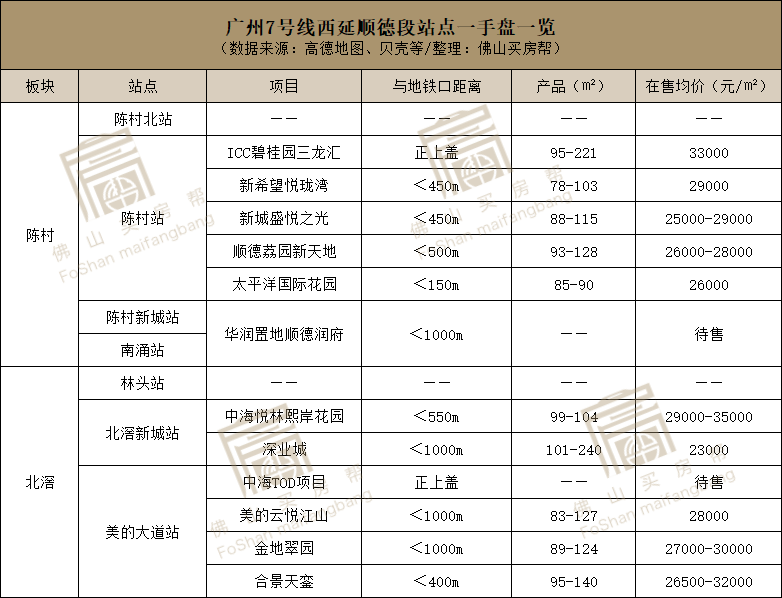 从目前来看,7号线的主要辐射范围为陈村新城、北滘新城,陈村更近广州,北滘产业更强,这两个板块各有优势,同时是顺德富人区,刚需、改善项目兼而有之。