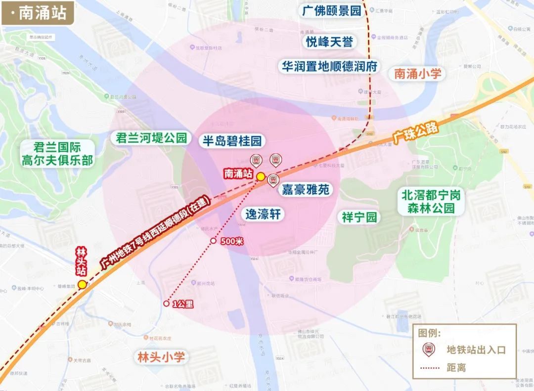 广州南站及韦涌站位于番禺,陈村北站附近无楼盘,我们从陈村站看起。