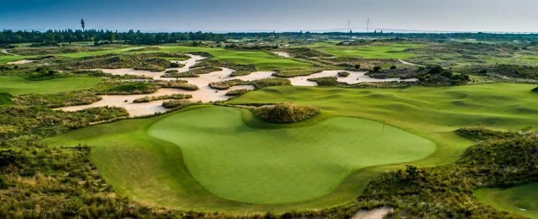 林克斯球场由澳大利亚OCCM公司担纲设计,崇尚自然、纯正林克斯风貌,沙坑、植被、球道、果岭、沙丘都最大限度诠释林克斯风格。同时,球场无球车道,国际化纯步行场体验,对标世界百佳球场中的林克斯球场。在设计师巧妙设计下,4号发球台可远眺长江美景、长江大桥,放眼望去,宛如一幅如仙境般的巨型画轴。