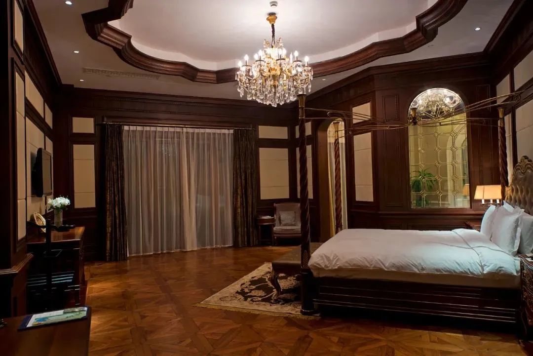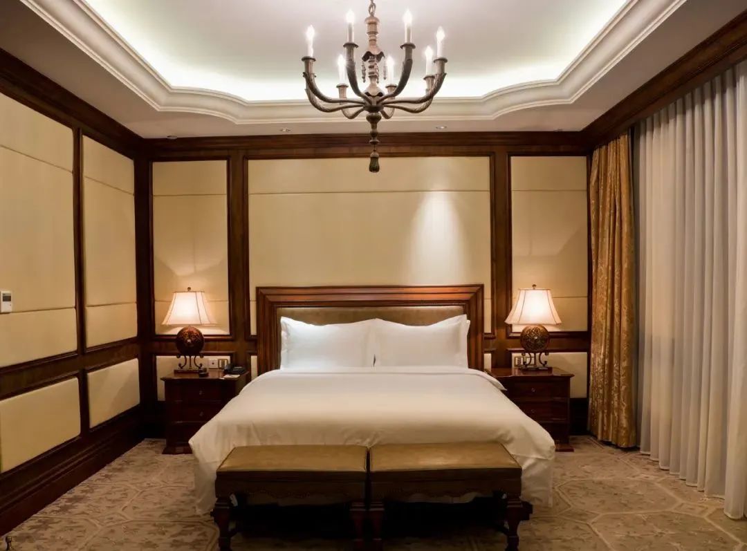 房间装饰典雅舒适、通透大气,每套房间都有精心设计的户外大阳台,可眺望球场景观及远处的长江大桥。