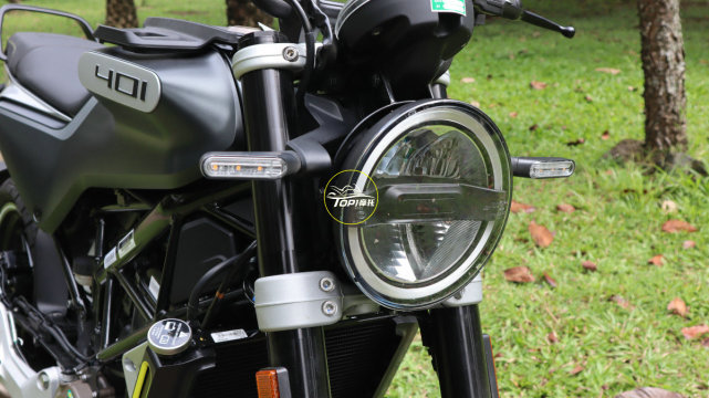 因为配备了圆形单头灯,所以你才会觉得Svartpilen 401会是一台复古车型,这是非常标志性的元素,而且这个圆头灯的内部结构是当下最流行的一种,中间部分以品牌LOGO将其一分为二,搭配外圈的LED日行灯,所营造出来的质感相当不错。