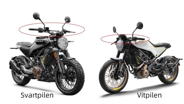 在聊车之前,先教你们如何快速分辨黑箭(SVARTPILEN)和白箭(VITPILEN)的区别,上图红圈车把的部分是最明显的。黑箭的手把偏向于Scrambler风格因此比较高,白箭的手把偏向于Cafe Racer风格因此配备了分离式的手把,两款车的骑行三角也截然不同。