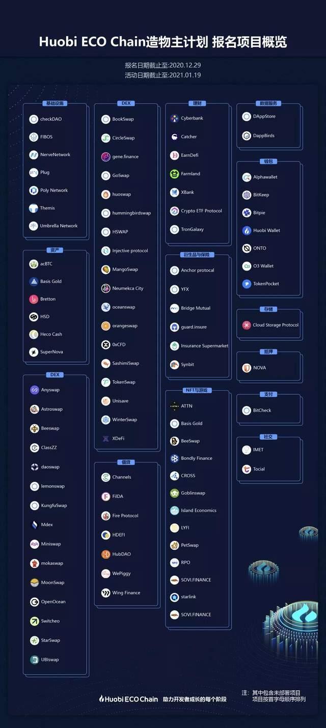 在上线不久后的2020年12月25日,火币生态链Heco就启动了名为“造物主计划”的特别活动。在这个活动中,开发者可以在Heco上进行部署,运行Dapp。Heco生态基金组建评委会将根据报名项目的运行情况,评定出Top5,给予“金牌造物主”称号及奖励。