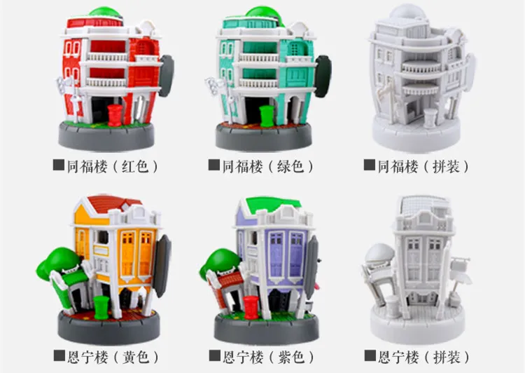 这款Q版骑楼骑楼拿到手是整装的,但其实可以拆开,一共有2个款式,4个颜色。还可DIY涂色,绘制出你独一无二的骑楼记忆。