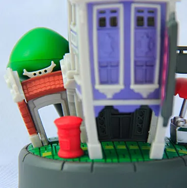为了定格这样饱含广府人情怀的画面,传递骑楼文化,我们走遍了广州大大小小的骑楼街调研取样绘制,耗时整整三年的时间潜心研发,参照广州特色建筑同福楼、恩宁楼,独家打造了具有代表性意义的Q版“骑楼”建筑模型。