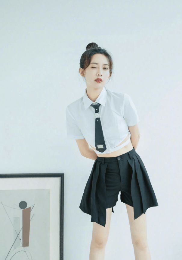 孟子义很喜欢通过镂空单品来展现魅力,短款镂空衬衫会起到人为提高腰线的作用,它会露出你白皙的腰部肌肤,并勾勒你不盈一握的小蛮腰,还是比较凸显身材的,搭配黑色裤裙就能秀出你笔直纤长的双腿,特别适合身材苗条的女性,适度的露脐是辣妹们的最爱,也是非常适合小个子女生的穿搭方式,除此之外,这也赋予了黑白配造型更时尚的气质