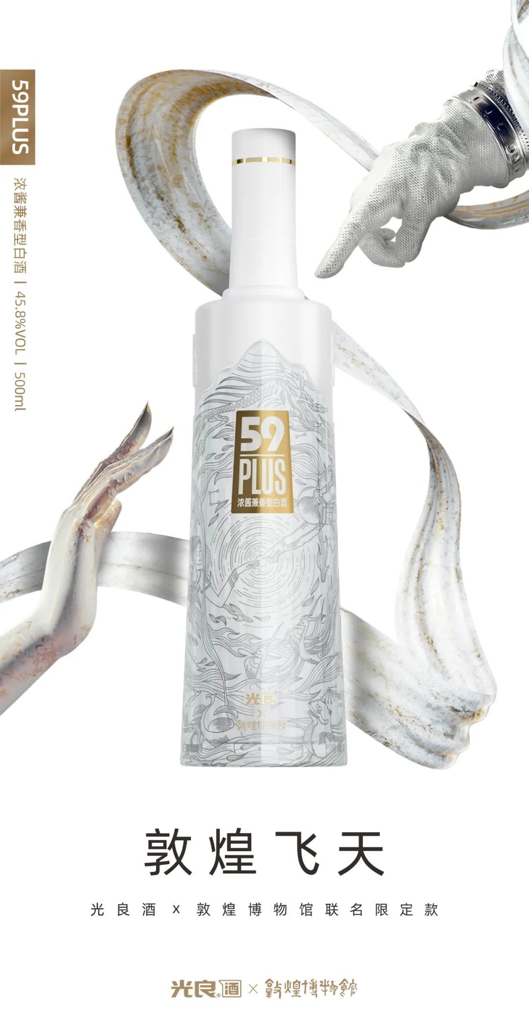 在这一光良酒业核心大单品获得不俗销量成绩后,今年春季,光良又推出品质升级版 “光良59 PLUS ”,据了解,光良59 PLUS 是一款浓酱兼香型光瓶酒,上市仅半年,光良 59 PLUS 亦获得了良好的市场反 响,而此次光良与敦煌博物馆外共同推出的联名限定款也是基于59PLUS。
