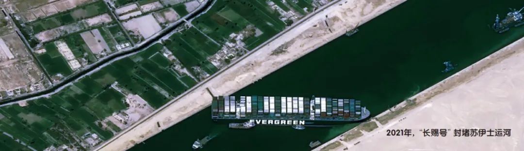 2021年3月23日,苏伊士运河再次发生了堵船事件,堵船时间接近一周,其影响比此前所有搁浅船只造成的堵塞事件都要严重。这次堵塞运河的“长赐号”约长400米,宽59米,重22万吨,吃水16米,是目前营运的最大型巨型船舶之一,已经接近运河运力的极限。“长赐号”航行在运河中的最窄处时,近乎贴着两岸前行,这时只要稍微偏移,船的两端就会撞到岸上,造成搁浅事故。不巧的是,就在“长赐号”航行在大苦湖附近的“单车道”上时,意外接二连三地发生了。