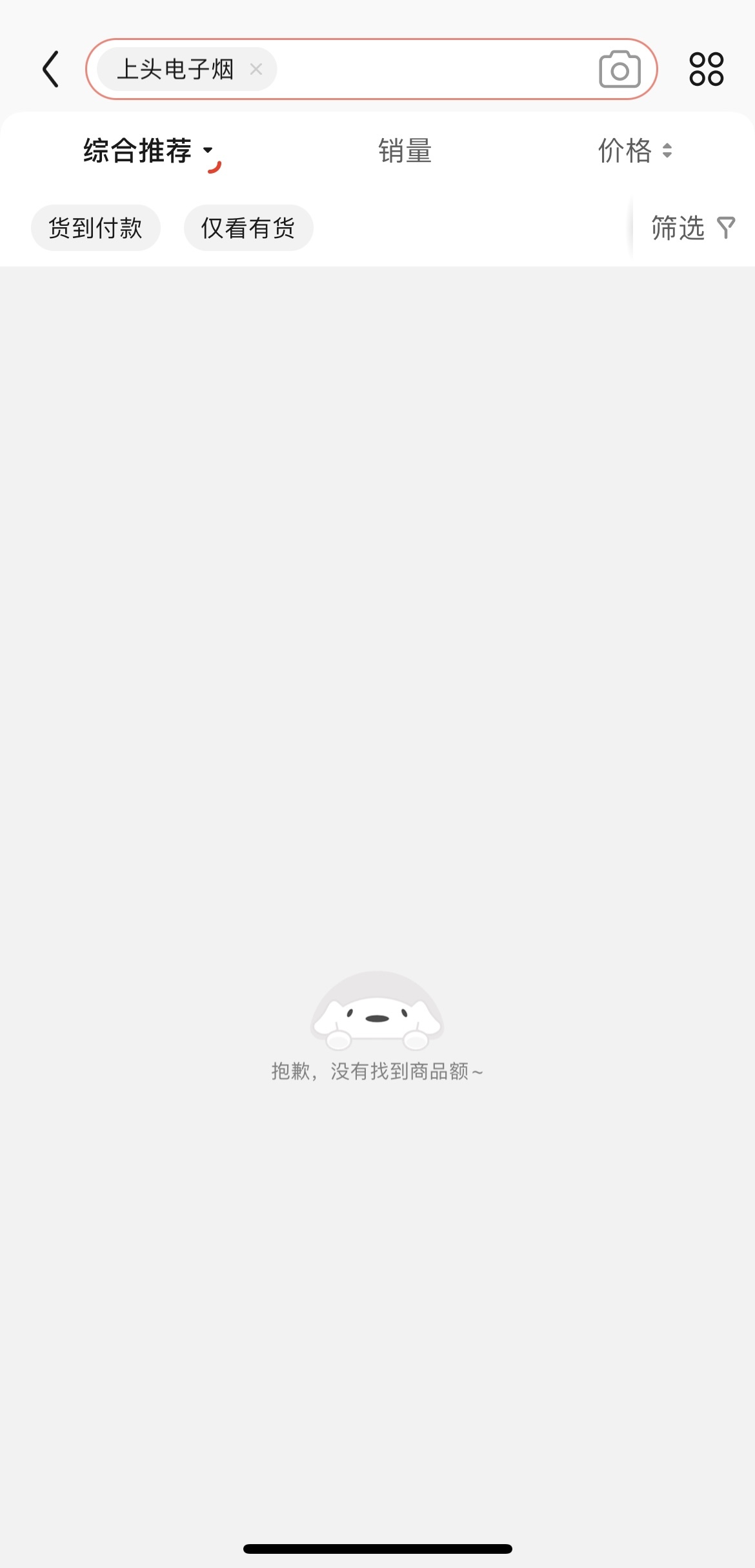 而在另外一个购物App,搜索“上头电子烟”则显示“抱歉,没有找到商品”。