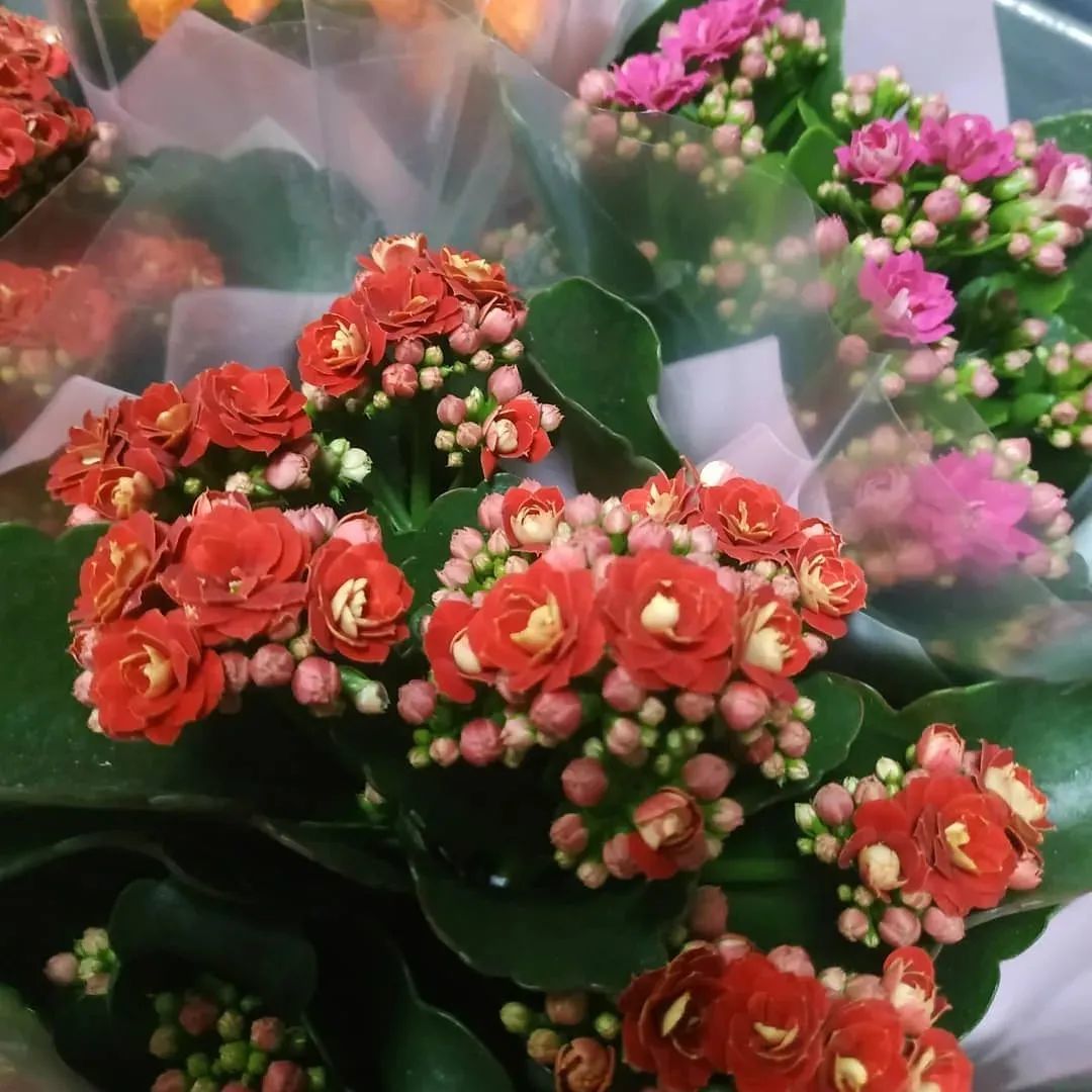 现在我们从市场上买回来的盆栽长寿花基本都是在大棚里培育的,它们的植株长得比较低矮,叶子旺盛,茎都是绿色的(基本就长几个月),花朵集中开在植株顶端。