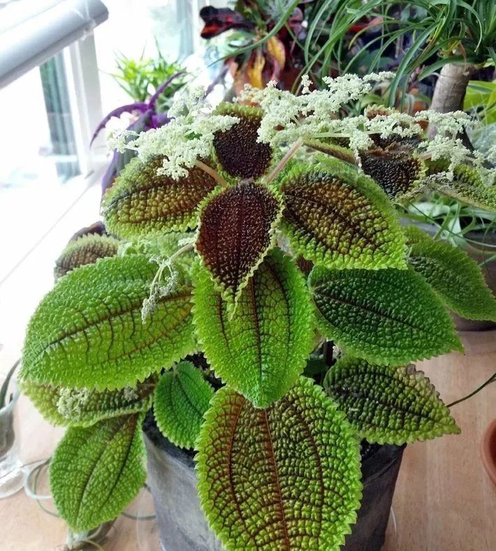 市面上我们能买得到的冷水花品种一般就有皱叶冷水花,叶子上有凹凸不平的纹路,是非常别致的冷水花品种,特别耐阴,适合养成桌面盆栽。