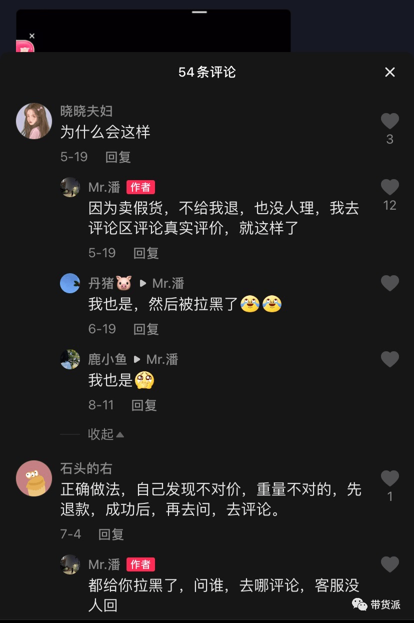 在产生消费纠纷时,董先生店铺的售后处理方式更是出人意料。有买家发现产品是假货联系客服退货,结果客服不给退,该买家一怒之下去评论区评论:不能买,不料董先生不仅没有积极处理,反而被拉黑了。