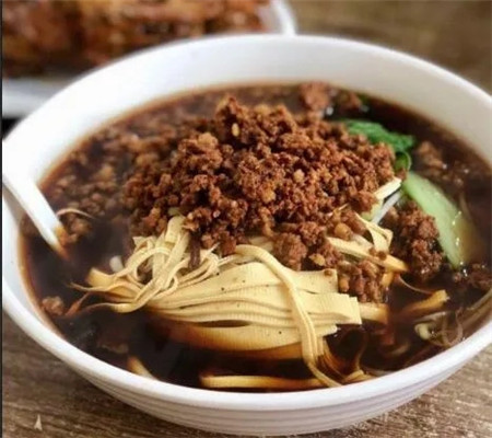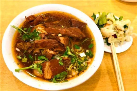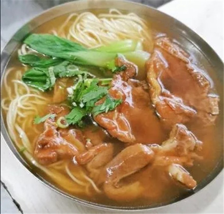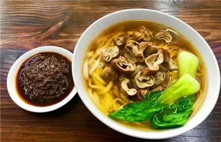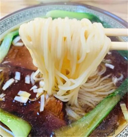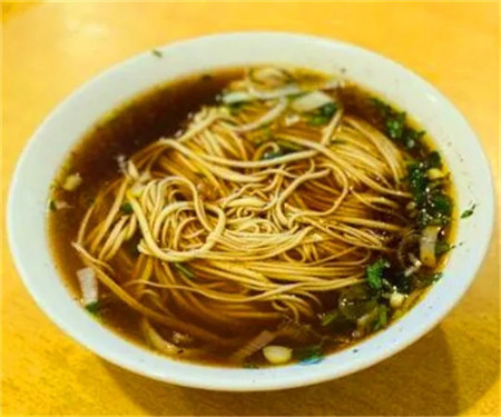 面汤是骨头汤,开了这么多年的店这碗老汤是熬到数了。面劲道量也大,配上香菜葱花点上陈醋拌上辣椒油,扒点蒜,那吃的一气呵成的爽。