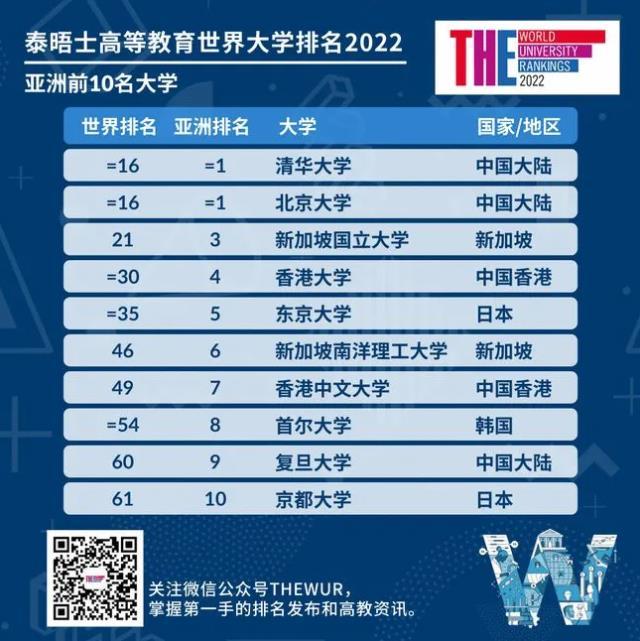 日前,国际教育机构泰晤士高等教育(THE)公布“世界大学排行榜2022”榜单。其中,岛内“高等教育一哥”台湾大学比去年(97名)退步16名,跌出百强。而清华大学和北京大学则并列排名第16位,成为大陆高校有史以来的最高排名。