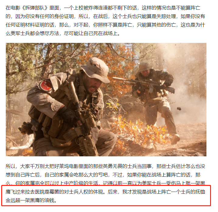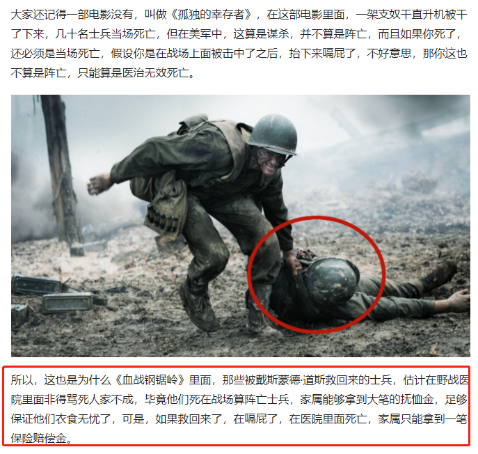 上面说这些,大体意思就是,美国士兵在服役期间死亡,美国政府没有赔付相应的抚恤金,是绝对不可能的。那么问题来了,下面这类营销号,有鼻子有眼的说美军没死在战场上就没有抚恤金的谣言,是怎么来的?