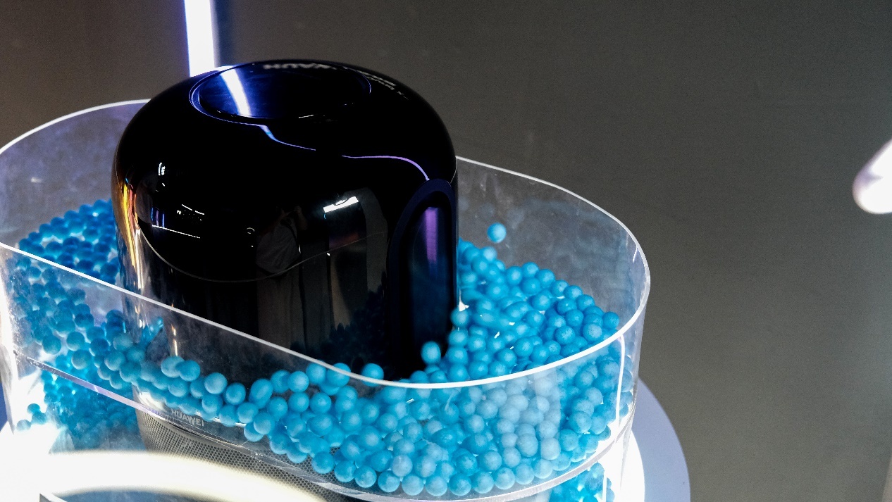 逛了一圈还发现一个很有趣的区域,为了可视化华为Sound X的低音效果,工作人员特意在音响周围放了一圈泡沫球,音响播放音乐的时候,两边的振膜会把周边的泡沫球弹开,看效果新一代HUAWEI Sound X确实有帝瓦雷的基因,要知道帝瓦雷最有名的就是震撼的低音。