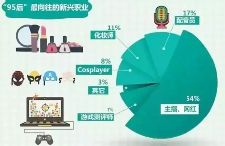曾有一项调查统计,95后的从业目标不再是科学家、老师、律师这些拥有社会责任感的职业,取而代之的是主播、网红。
