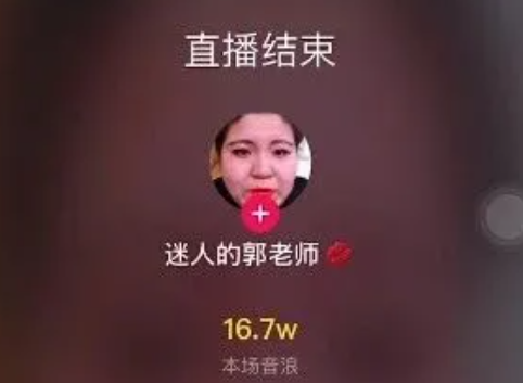 从数据上看,短短不到一小时的直播,郭老师收获16.7万音浪,折合人民币一万六,扣除平台抽成之后净赚8000多。