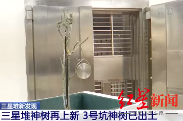 徐斐宏说,根据他们的观察,3号坑新出土的这根神树跟2号坑出土的二号神树,不管是形制还是体量方面,都有很高的相似度,“甚至不能排除它们属于同一棵神树——2号坑、3号坑两根神树要是能拼在一起,就能说明很多学术问题,会是非常重要的一个发现。目前还在继续拼接碎片,更多发现还有待慢慢揭晓。”