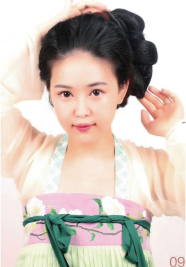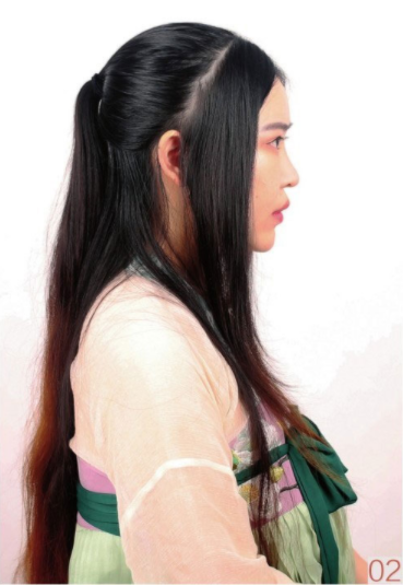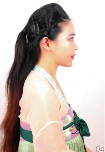 采用垫发、编发和灵蛇髻侧垫的手法,做出一个干净而特别的唐风造型。