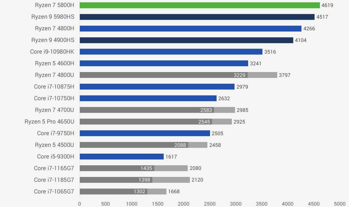 在众多游戏玩家关心的核心配置上,此次神舟炫龙M7-E8S3采用了锐龙7 5800H处理器,也是目前最受玩家欢迎的处理器,因为凭借Zen3的优势,在基础频率上增加了300MHz,在加速频率上增加了200MHz,使得锐龙7 5800H可以力压群雄,而且从数据上可以看出AMD的优势也在逐渐地展现,锐龙7 5800H也以不错的跑分成绩位列第一位,性能可谓“不可小觑”。
