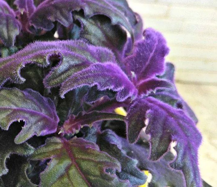 紫鹅绒是菊科菊三七属的草本植物,它的叶片桑长满了紫色的绒毛,就如同叶子染上一层紫色的荧光般,在有较多光照的环境下,观赏性会特别好,如果环境过度遮阴,叶色就会显得暗淡。