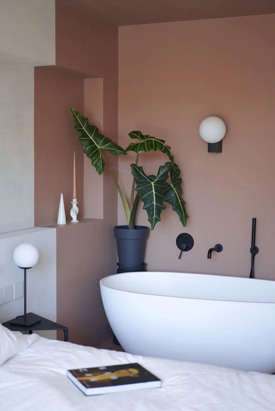 卧室浴缸可以边泡澡边看风景,而且水汽可以让北京干燥的天气变得湿润。