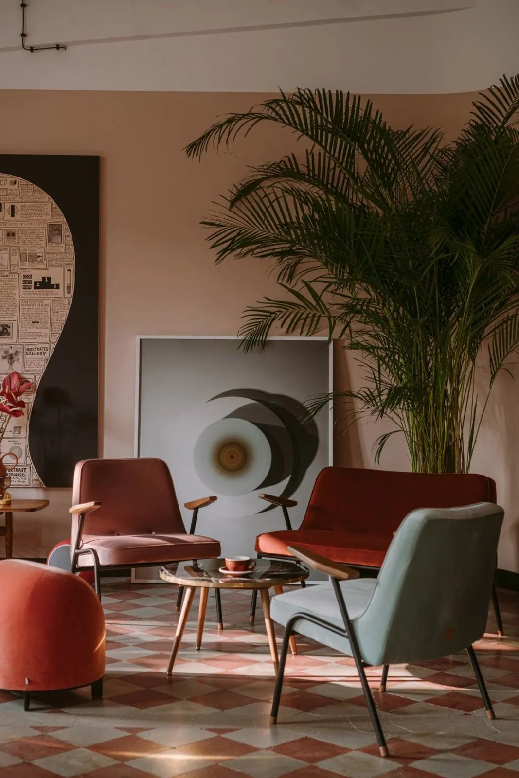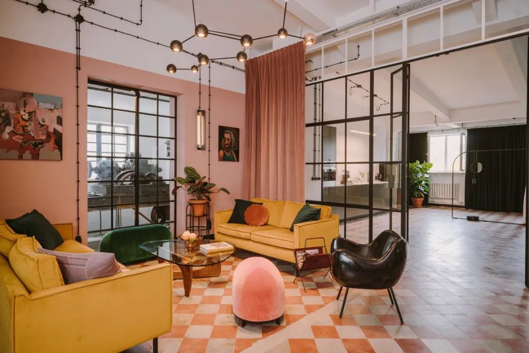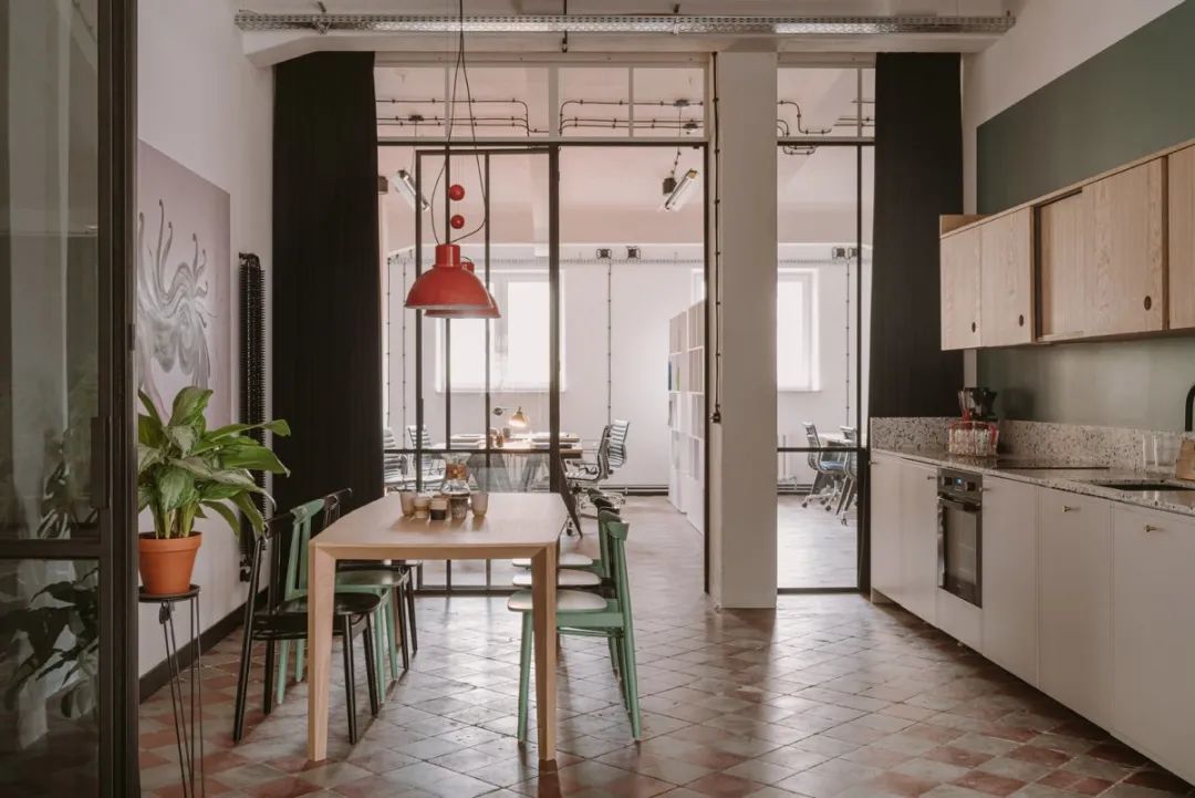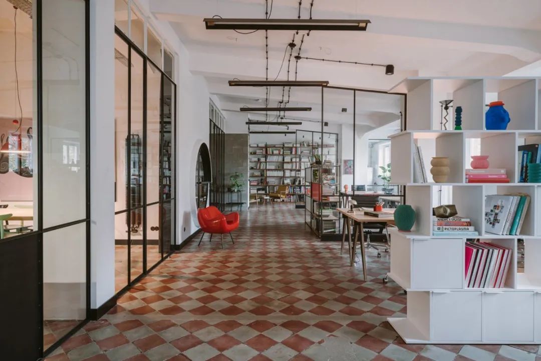 Mateusz Baumiller融合了深粉色的墙壁、天鹅绒的家具和木制的固定装置,软化了华沙这个创意办公室的工业外壳。他负责对建筑进行大修,他说他想保留阁楼的特点,同时创造一种“家”的氛围。丰富的现代波兰艺术、叶状植物和书籍也散布在整个空间,以增加舒适的家庭氛围。