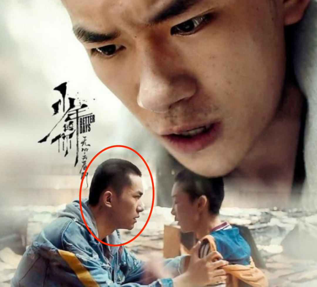 其实男明星都不太能看出扁头,因为大家可以用发型修饰。但是易烊千玺在拍《少年的你》时,剃了寸头,从侧面看,他的扁头就比较明显了。他跟同框的周冬雨一对比,差别也很明显。