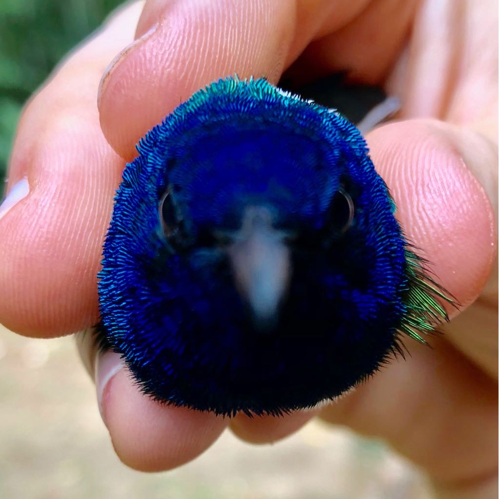 雄性蜂鸟,或者伪装成雄性的雌性蜂鸟:头颈为闪亮的蓝色 | [1]