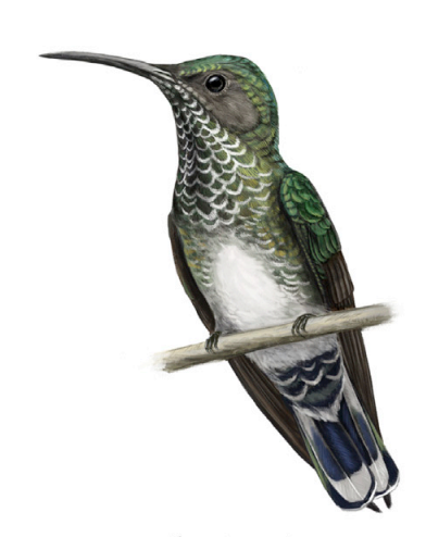 普通雌性白颈蜂鸟(Florisuga mellivora),周身灰绿色的羽毛 | [1]