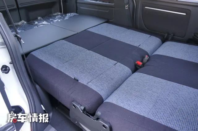 晚上休息的时候,就可以将第二排第三排座椅放倒放平,拼接成一张双人的沙发床,大小尺寸可以容纳两个成年人使用。