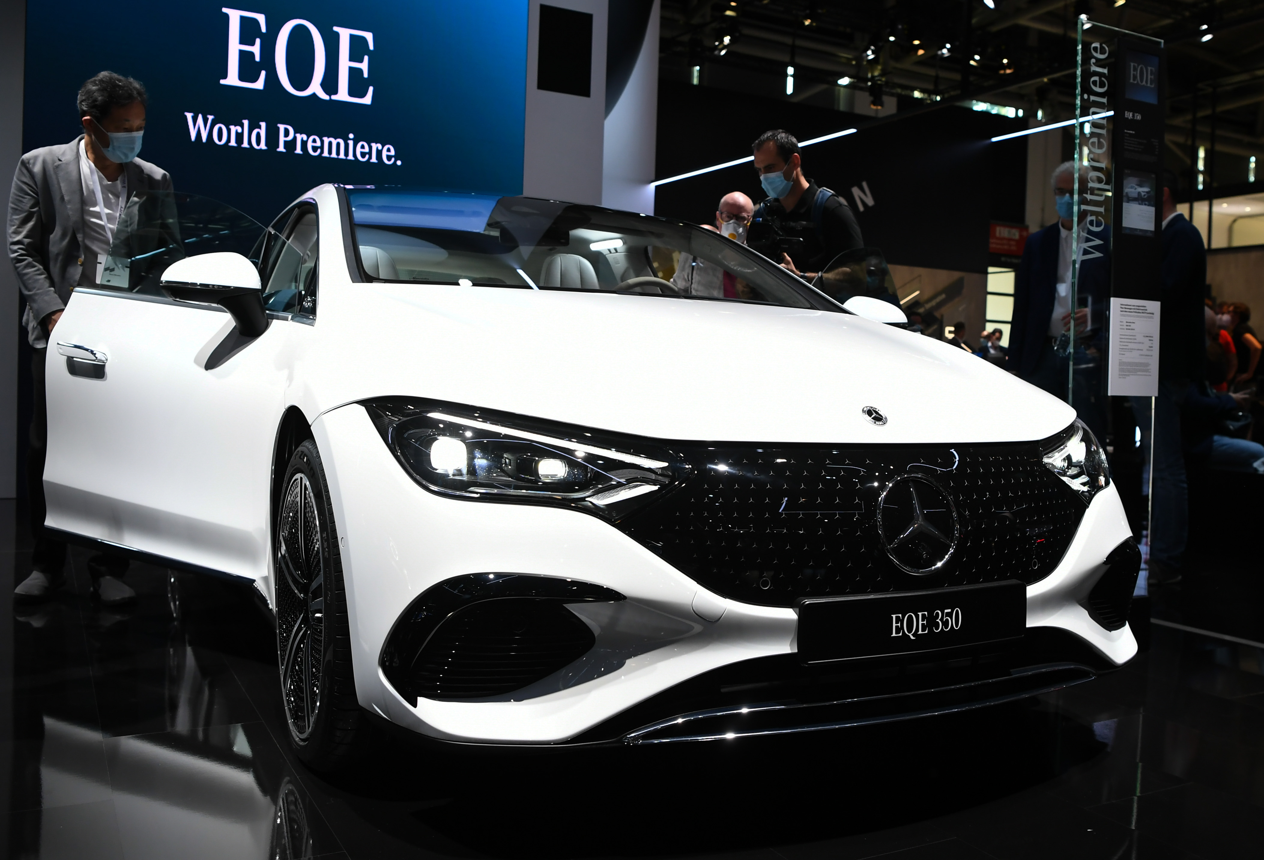这是9月6日在德国慕尼黑举办的德国国际汽车及智慧出行博览会媒体日期间拍摄的梅赛德斯-奔驰EQE 350汽车。新华社记者 逯阳 摄
