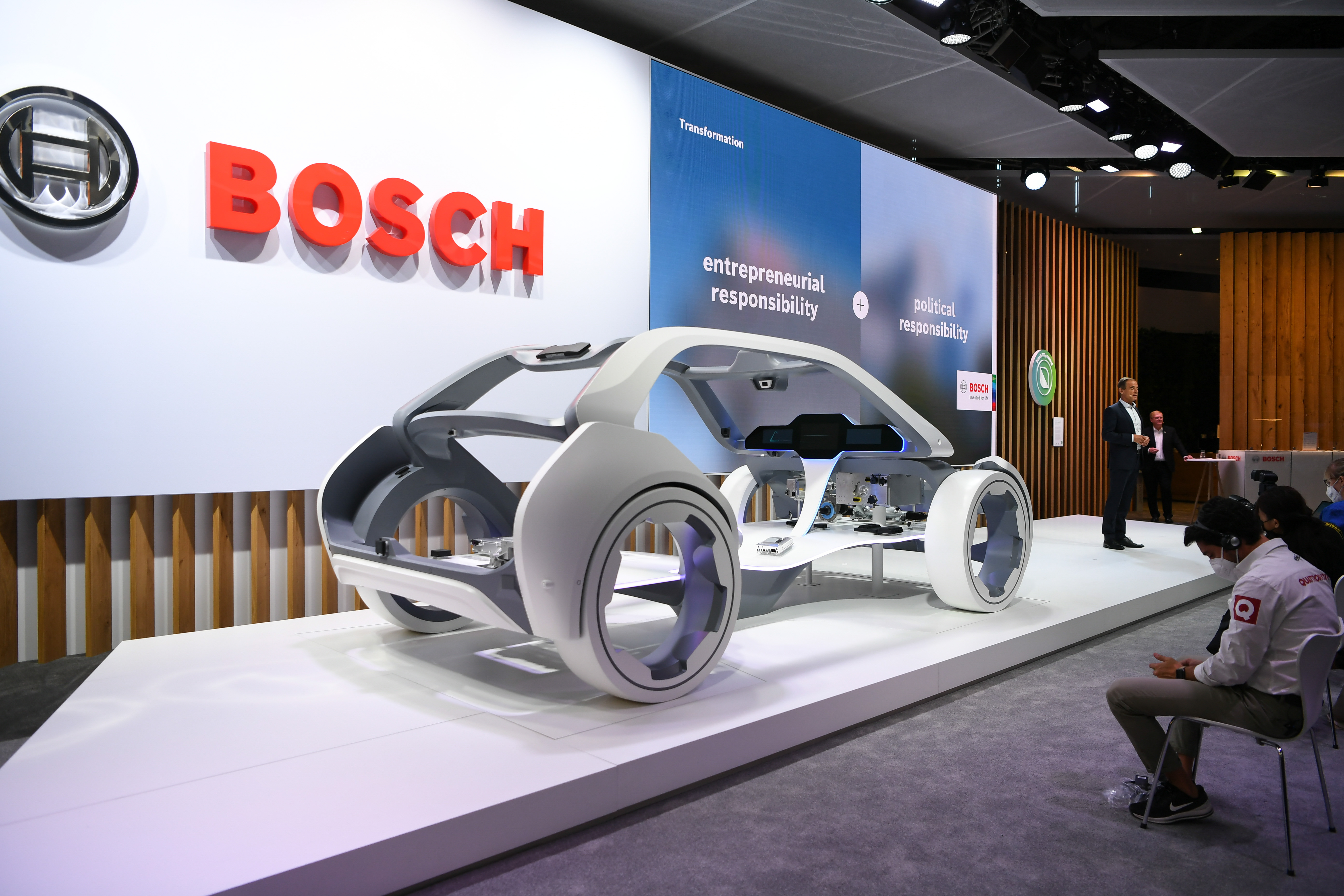 这是9月6日在德国慕尼黑举办的德国国际汽车及智慧出行博览会媒体日期间拍摄的博世展台。新华社记者 逯阳 摄