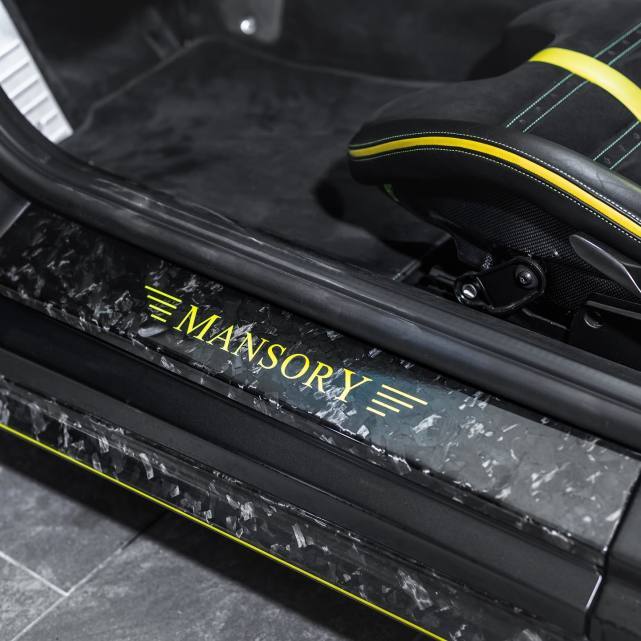 印有亮黄色“MANSORY”字样的碳化踏板,以及同样采用亮黄色装饰条纹的“运动座椅”等内饰风格,与外观亮黄色装饰线“里应外合”,让黑色MANSORY迈莎锐Stallone更显卓尔不凡。