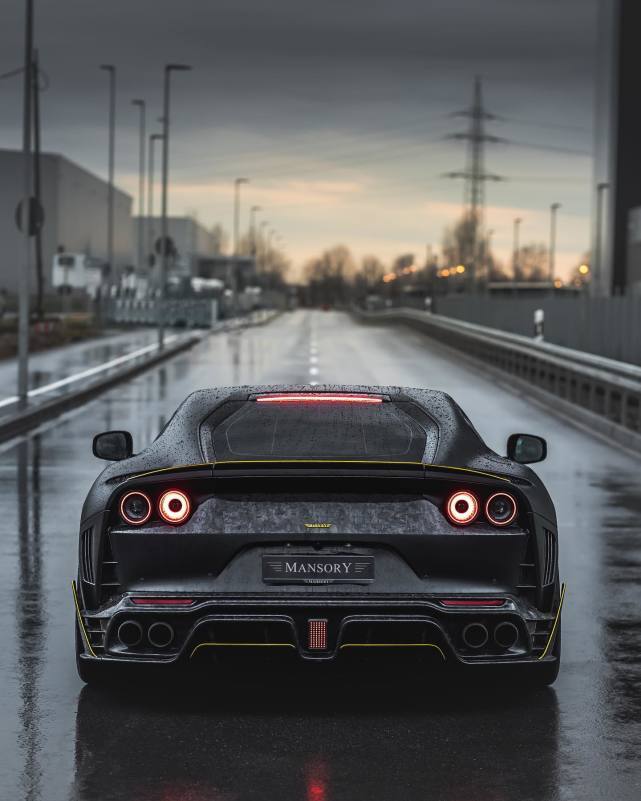 见惯了热情似火的红色法拉利,这款黑色MANSORY迈莎锐Stallone更显神秘、高冷。在—场雨后寂寥的街头,有一辆沾满新鲜雨珠的跑车,静候一个打开它车门的人,这绝对是一个浪漫故事的开始。