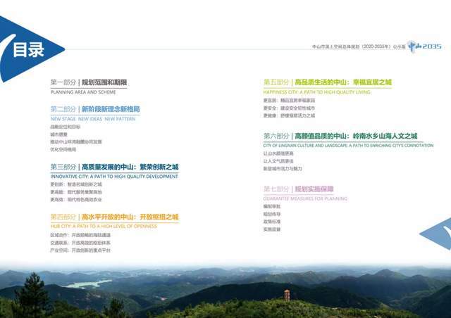 公示分七大章节,其中涉及中山未来十五年的发展规划: