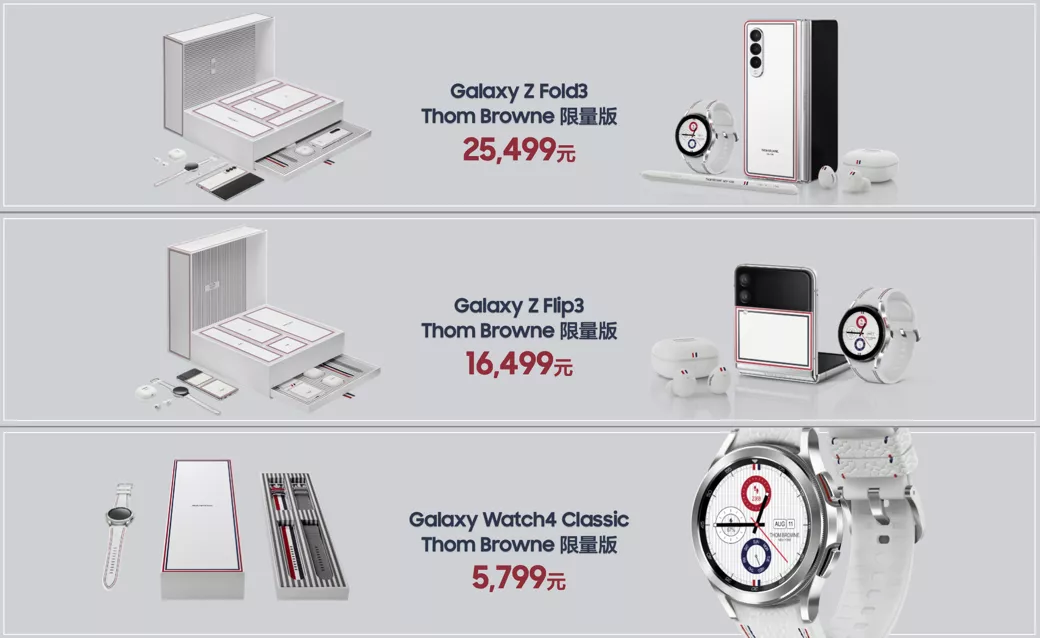 三星Galaxy Z Fold3 5G Thom Browne版建议零售价25499元,三星Galaxy Z Flip3 5G Thom Browne版建议零售价16499元,9月8日上午10:08正式开售。
