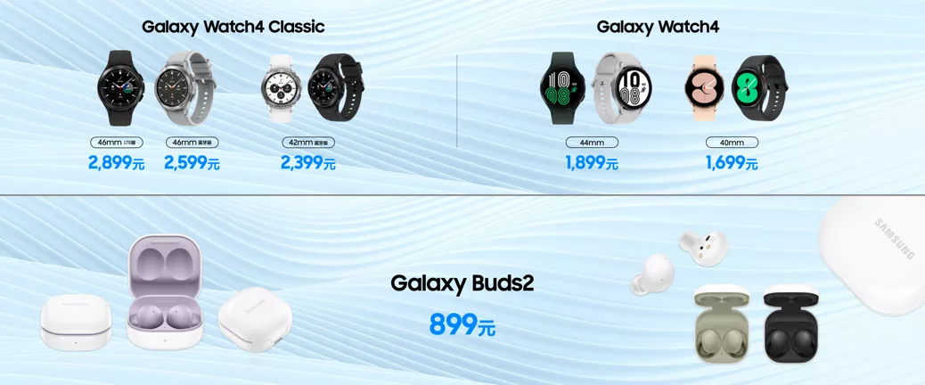 包含Galaxy Watch4和Galaxy Watch4 Classic两款手表。搭载Wear OS操作系统,兼顾Bixby语音、三星健康等众多服务与诸多广受欢迎的第三方应用程序。